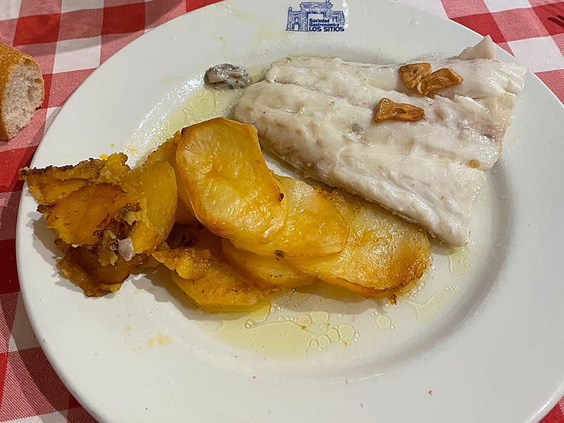 Para las patatas panadera, cortar las patatas con un cuchillo o mandolina de un grosor de 1 cm, colocarlas en una bandeja de horno, salar, mojarlas con AOVE, con el vino y el fumet, tapar con papel de aluminio e introducir en horno precalentado a 180º durante 30 minutos. Subir a 220º el horno retirar el papel y dejarlas que cojan color durante 15-20 minutos o el tiempo que estiméis oportuno.