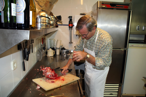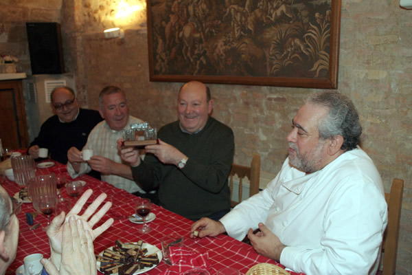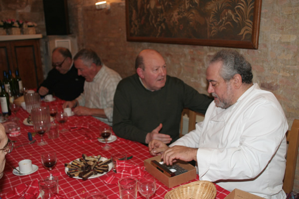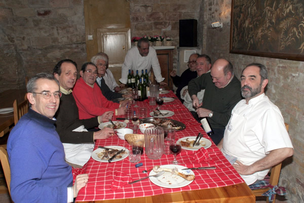En 1 de Diciembre del 2007, nuestro socio Luis Lacambra fue anfitrión de un grupo de zarautarras pertenecientes a un txoko de Zarauz, que aceptaron la invitación para comer el mejor cordero que nuestro socio y ganadero Luis Antorán nos proporcionó. Un poco apurados para trocear el cordero al final Alfonso y un servidor nos hicimos con el animal. La comida fue muy agradable contando anécdotas de fogones de estos expertos txokeros. Se les entregó una peana con la Puerta del Carmen como recuerdo de la visita.