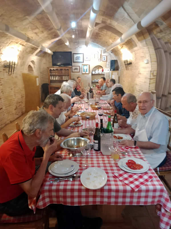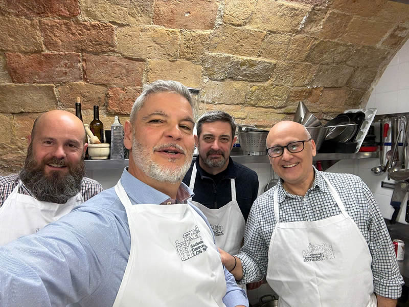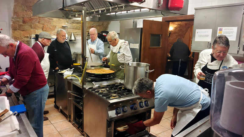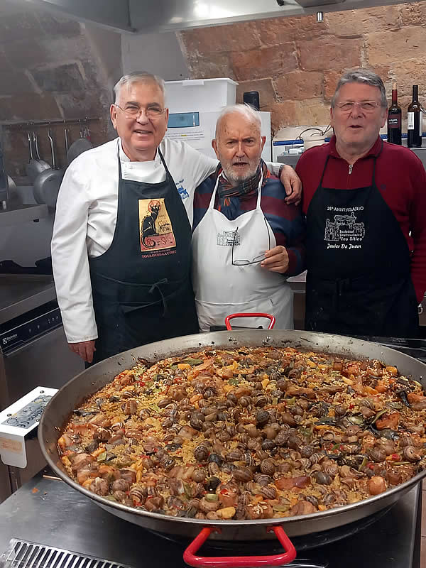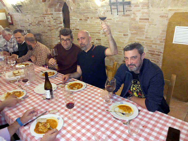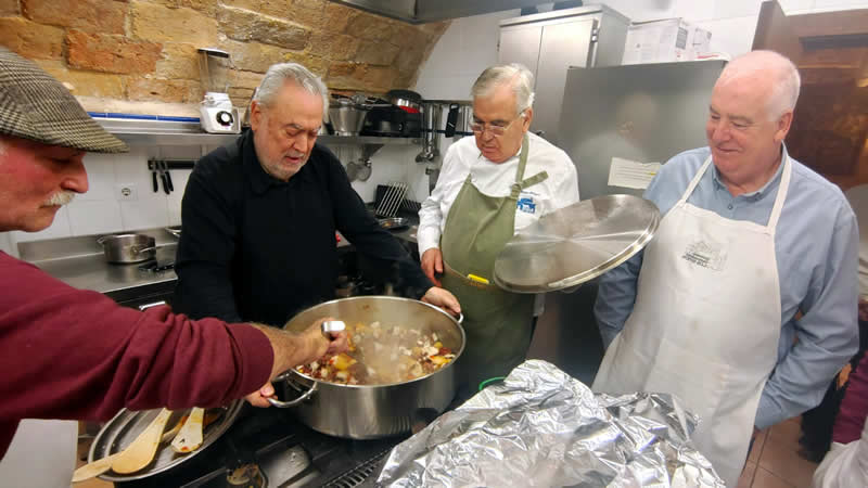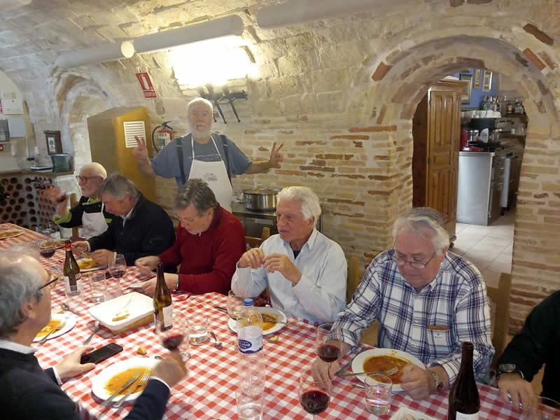 Como no puede ser de otra manera, los cocineros al calor de los fogones prepararon almuerzo, que regaron con un excelente vino joven de la cosecha de nuestro presidente.