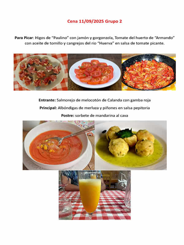 El 06 de Febrero del 2025, pasados los excesos gastronómicos de navidades, el grupo 3 ofició un excelenete menú compuesto de: