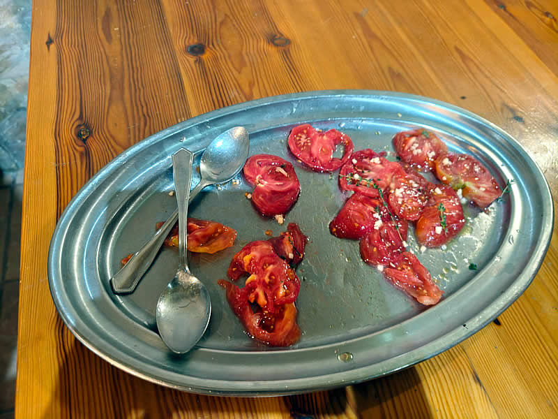 Tomates de huerto con aceite de romero