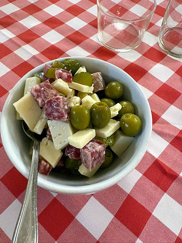 Aceitunas, longaniza y queso