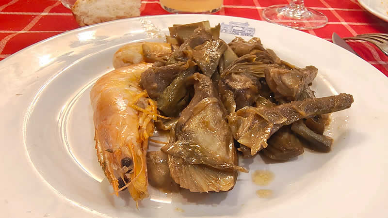 Alcachofas con langostinos