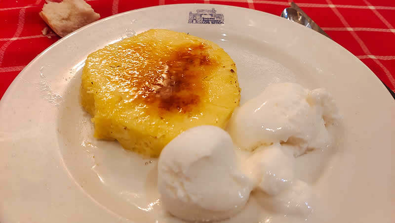 Piña caramelizada con helado de sorbete de limón