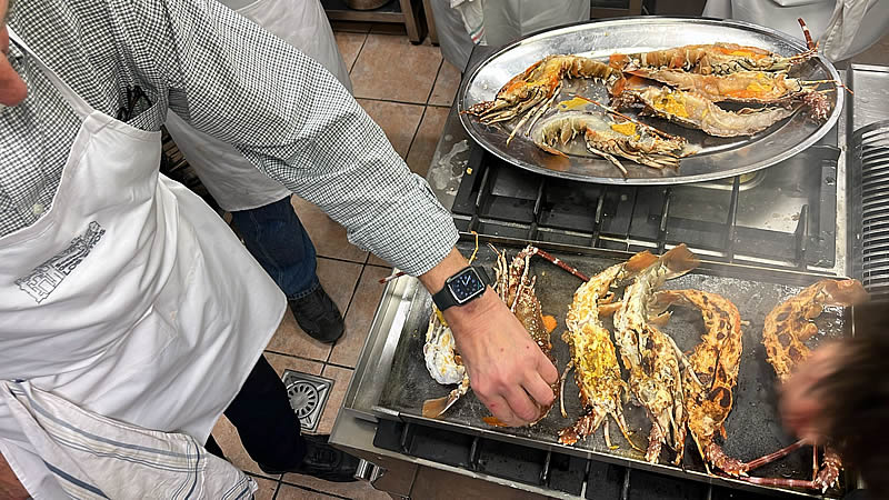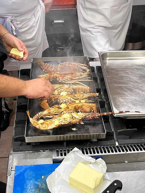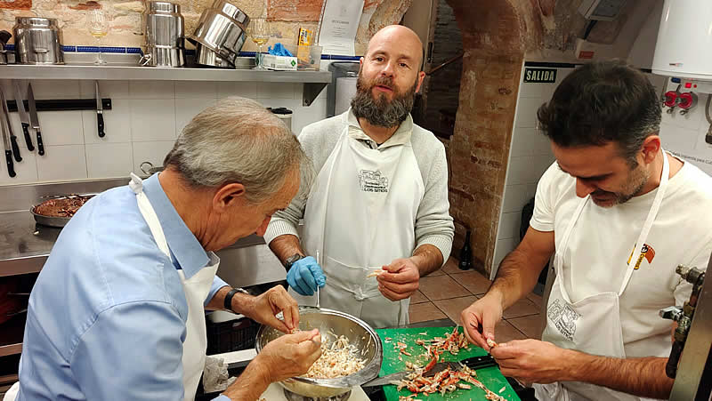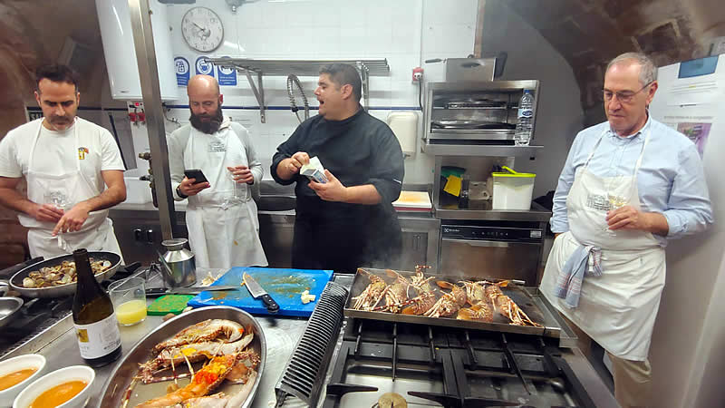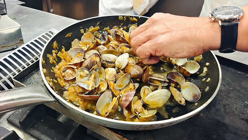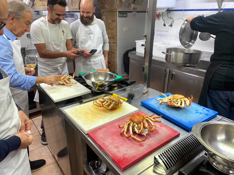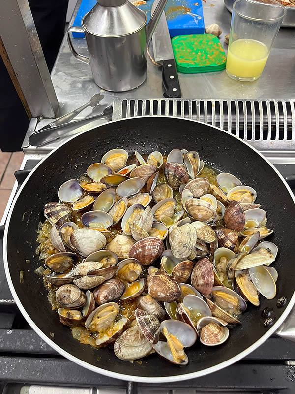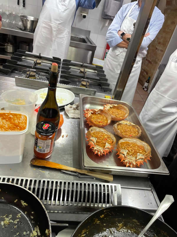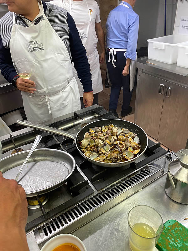 Curso de cocina de Hugo Noviembre 2024 (sesión 7) En el mes de Noviembre y como adelanto a las navidades, Hugo nos preparó tres sesiones de marisco antes de que el precio se pusiera por las nubes. Almejas a la marinera Zamburiñas a la plancha Txangurro a la donostierra Langosta a la plancha Dimos buena cuenta de los platos que regamos con un verdejo, sidra y un Rioja tinto Anterior Siguiente