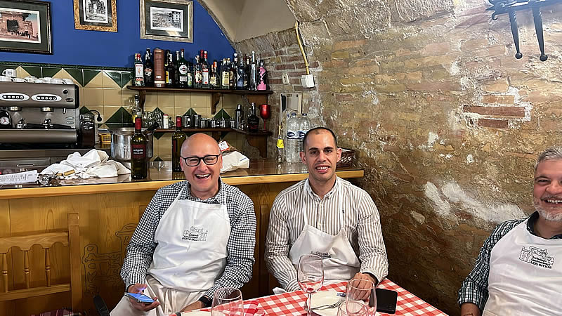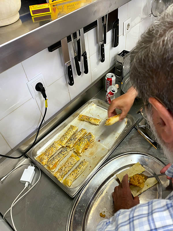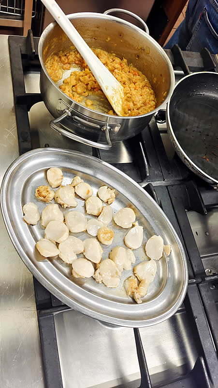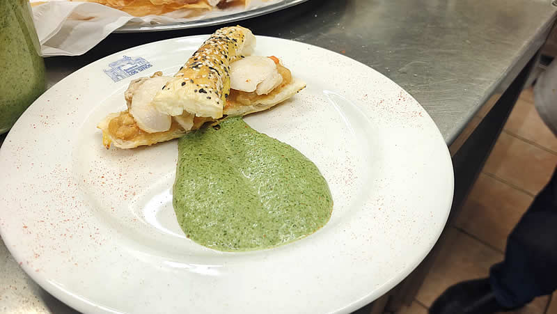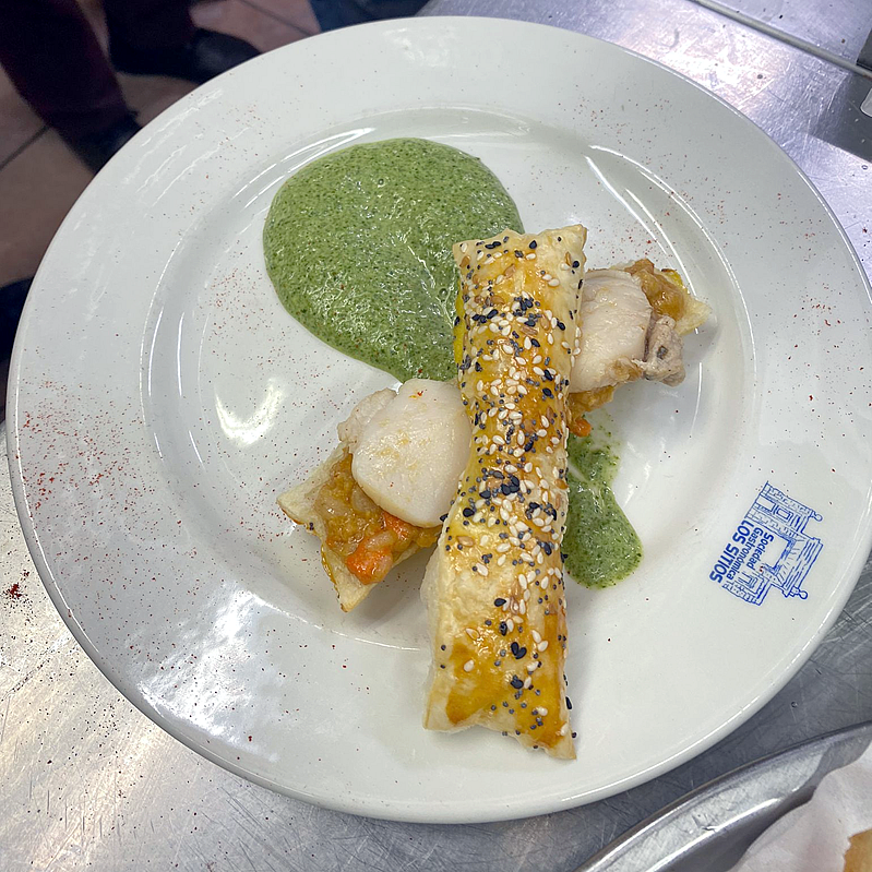 Curso de cocina de Hugo Mayo 2024 (sesión 4) Seguimos con los cusos de cocina impartidos por Hugo, esta vez las recetas fueron Hojaldre relleno de mouse de gambas y vieira sobre crema de espinacas Carrilleras de cerdo al Pedro Ximénez Versión de la carrot cake Dimos buena cuenta de los platos que regamos con un verdejo, sidra y un Rioja tinto Anterior Siguiente